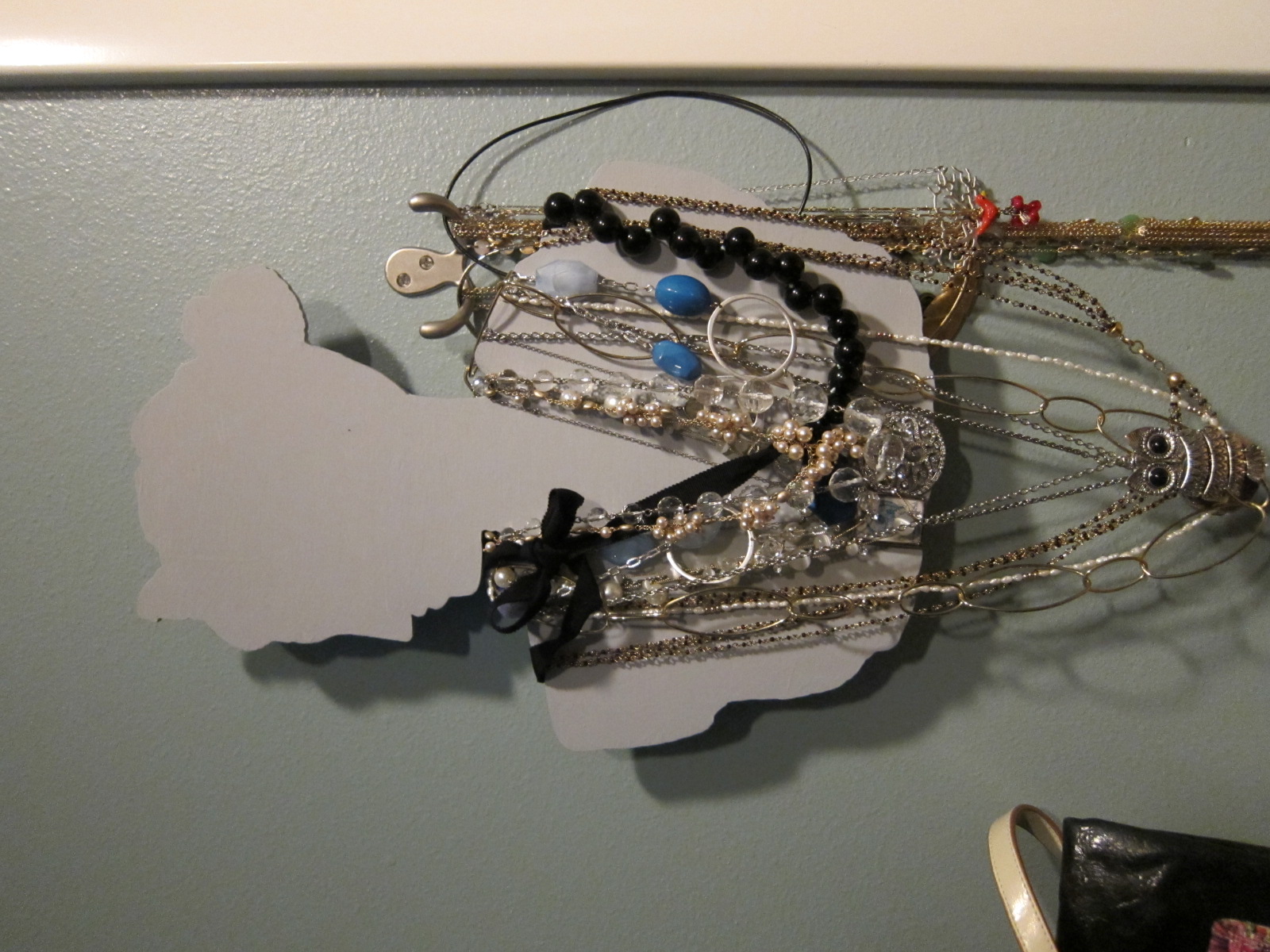 I saw this silhouette necklace holder project via a link from Design Sponge.