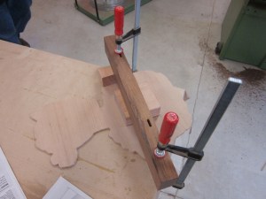 Using wood glue we glued the mounting block to the back of the silhouette and clamped it in place for about 4 hours.