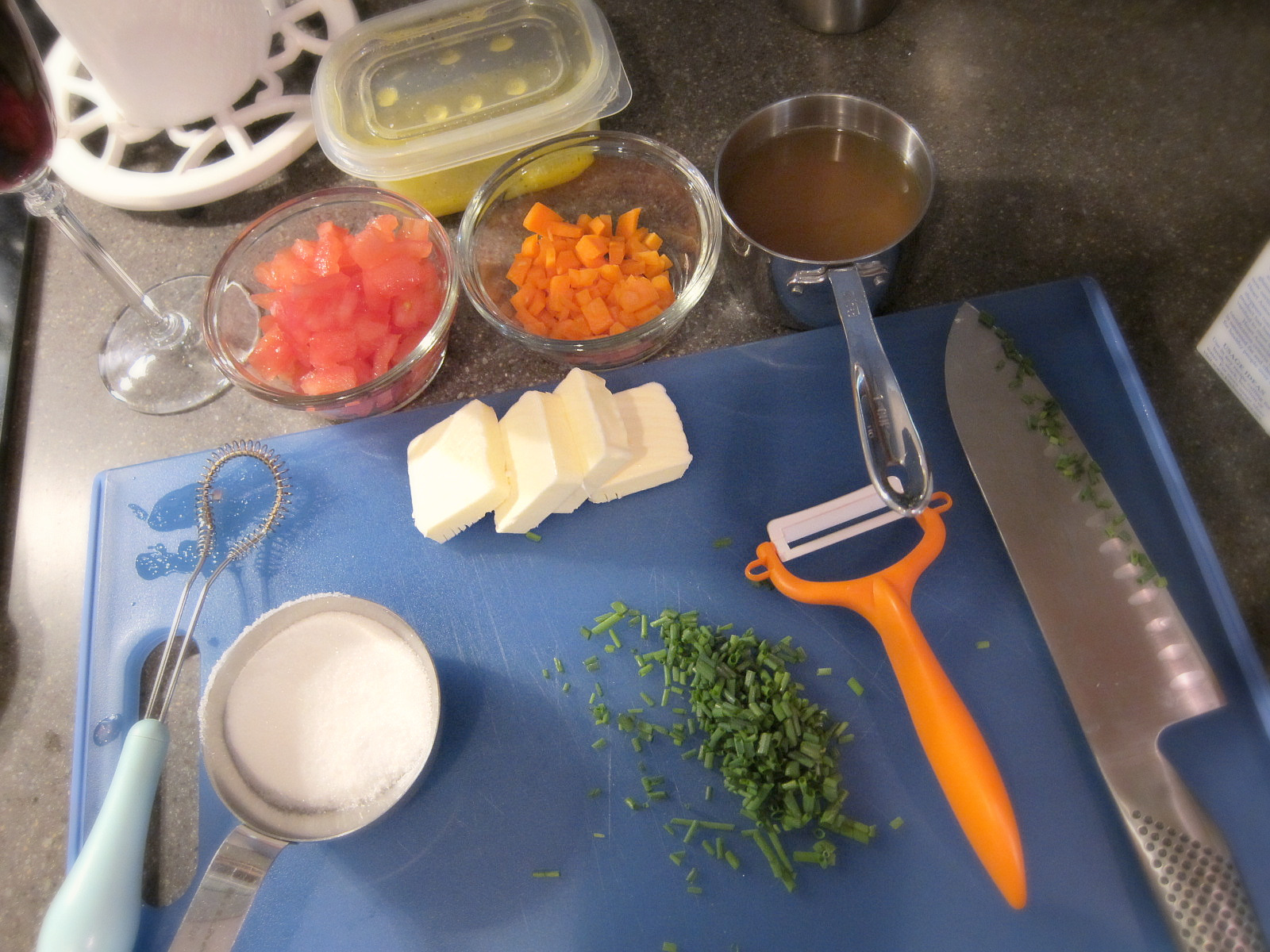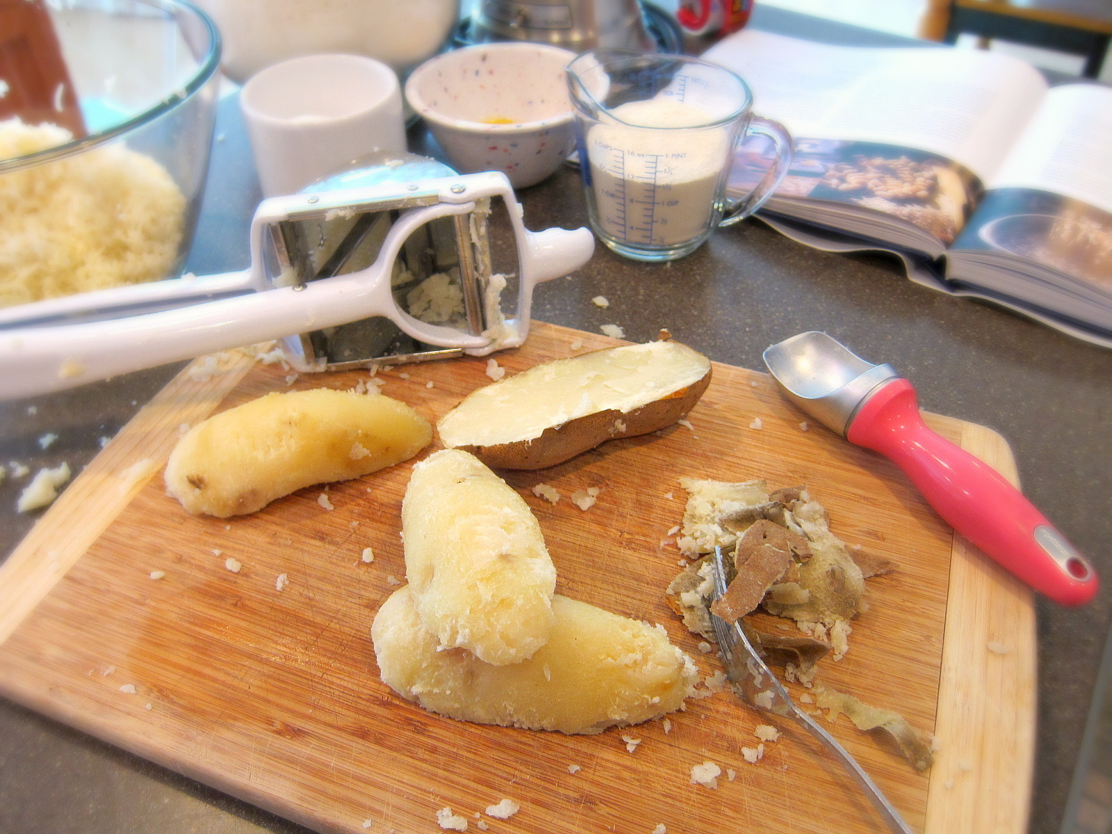 So, first I baked the potatoes. Yes! I can do this. I didn’t even mind the starch-glue bomb that went off all over my kitchen.