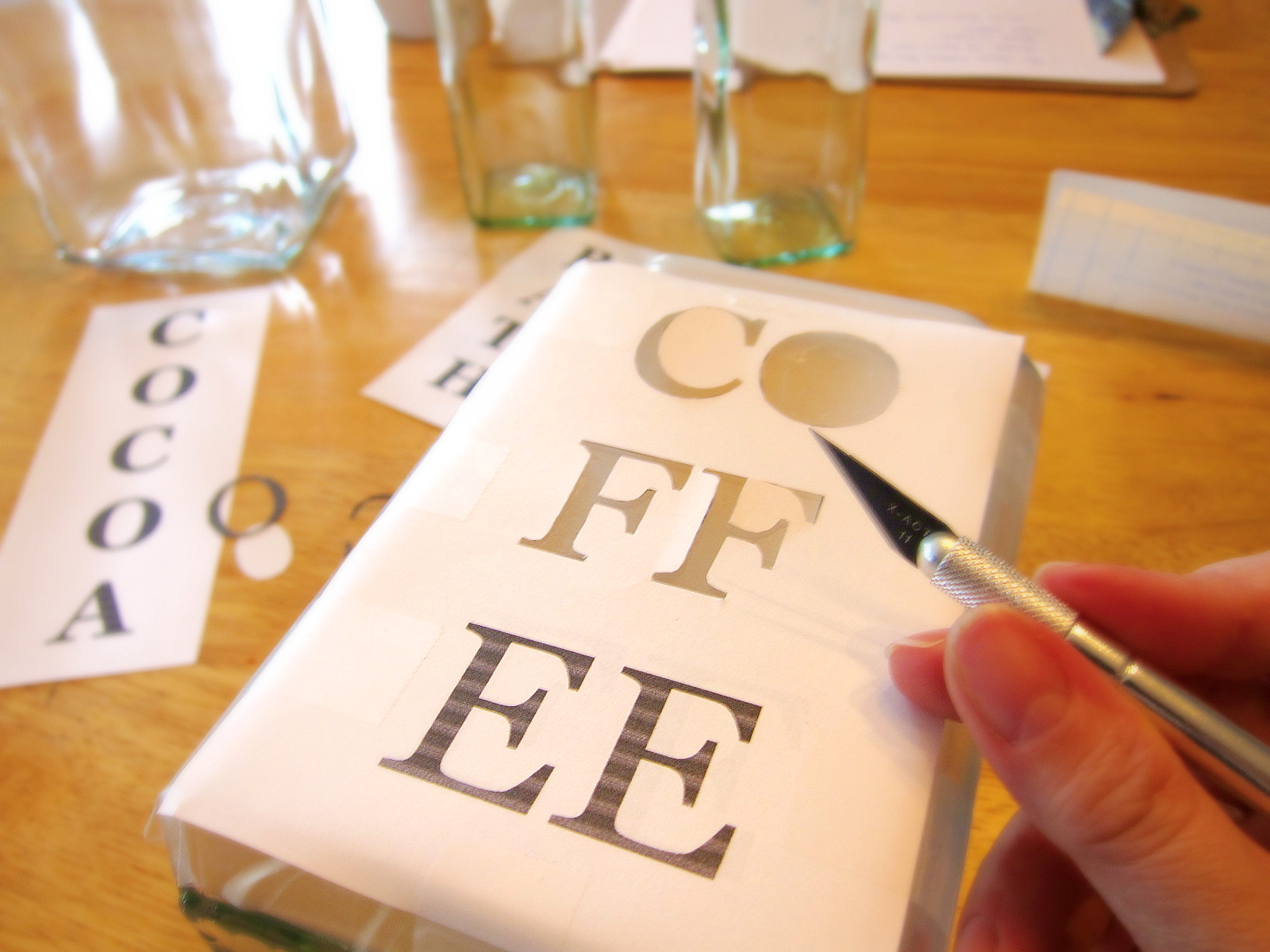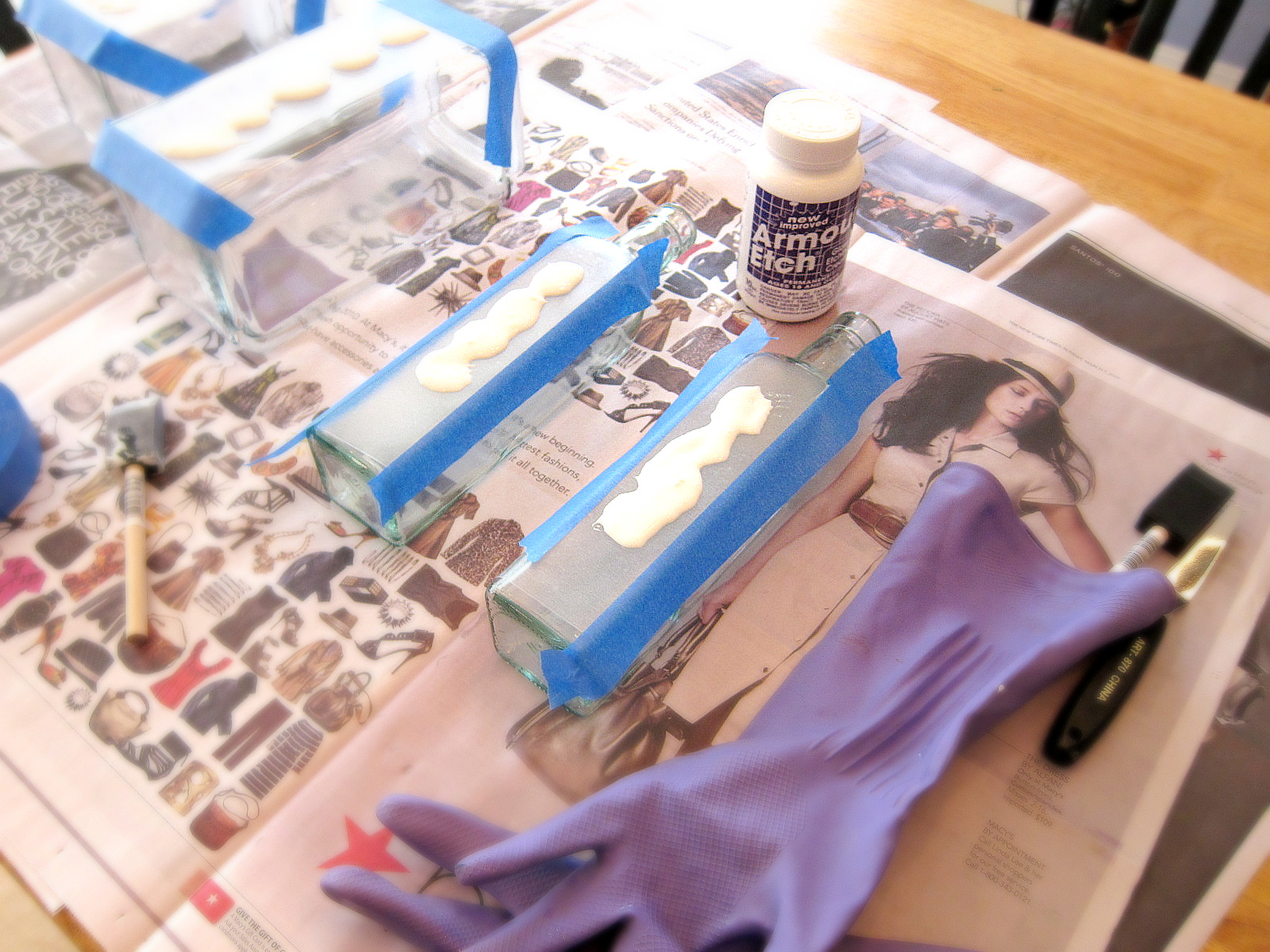 I needed new containers for the morning beverage(s) of choice around our house. I’ve always wanted to try etching and I found this super simple how to at Create Studio