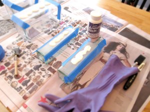 Step #5 Tape off the jar if your nervous about spillage. Lay the jar on its side. If you are working on a round object you can use old towels or newspaper to prop it so it won’t roll.