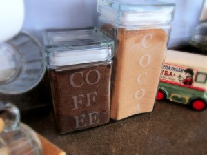 Step #6 Rinse and wash your containers, then put coffee and cocoa in them. Stand back and smile smugly at them.