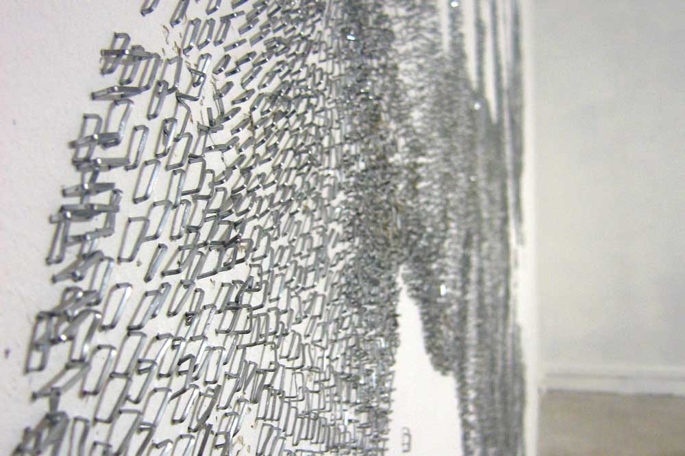 Baptiste Debombourg has used 35,000 staples to create Air Force One and Two. A depiction of Icarus’ Fall