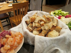 My fondue pot is one in which you can cook your fondue then just take it over to the little stand and you’re ready to eat. I got mine here. If your pot doesn’t have this function, just make the fondue in a heavy bottomed sauce pan then pour into your fondue pot.
