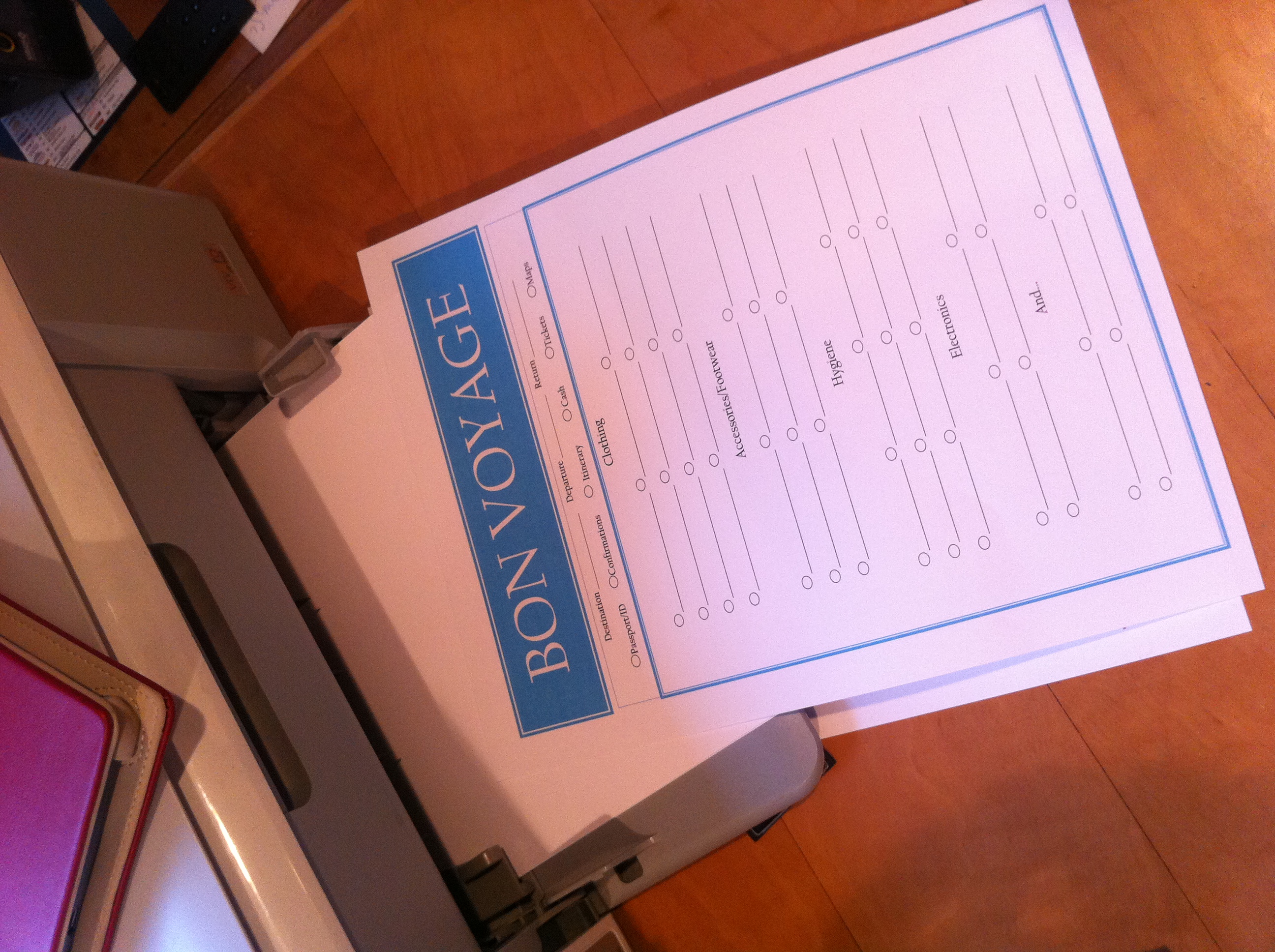 Yes, another printable packing list Kathleen Rear no comments March 18, 2011 Click the link below Bon voyage packing list (opens in word) Share this: Click to share on X (Opens in new window) X Click to email a link to a friend (Opens in new window) Email Click to share on Facebook (Opens in new window) Facebook Click to print (Opens in new window) Print Click to share on Tumblr (Opens in new window) Tumblr Click to share on Pinterest (Opens in new window) Pinterest Like Loading... Related