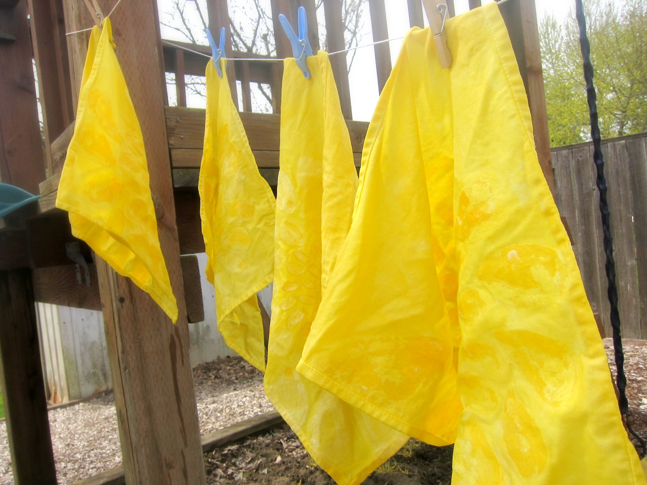 Because the wax was still on the fabric I didn’t want to put the napkins into the dryer. So I hung them out on a clothesline to dry.