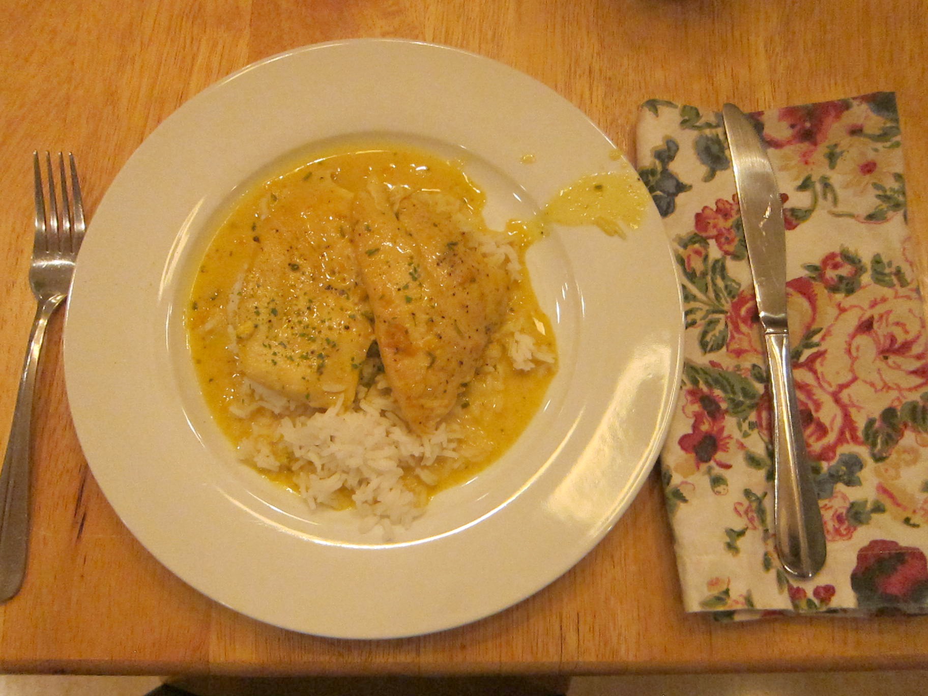 There is an Indian place near campus here in Eugene called Evergreen. This is my amateurish attempt of their squeal inducing mango curry.