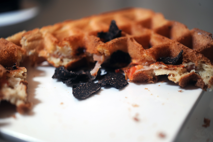 And her recipes! The above is truffle, cheese and prosciutto stuffed waffles! Yes, please!