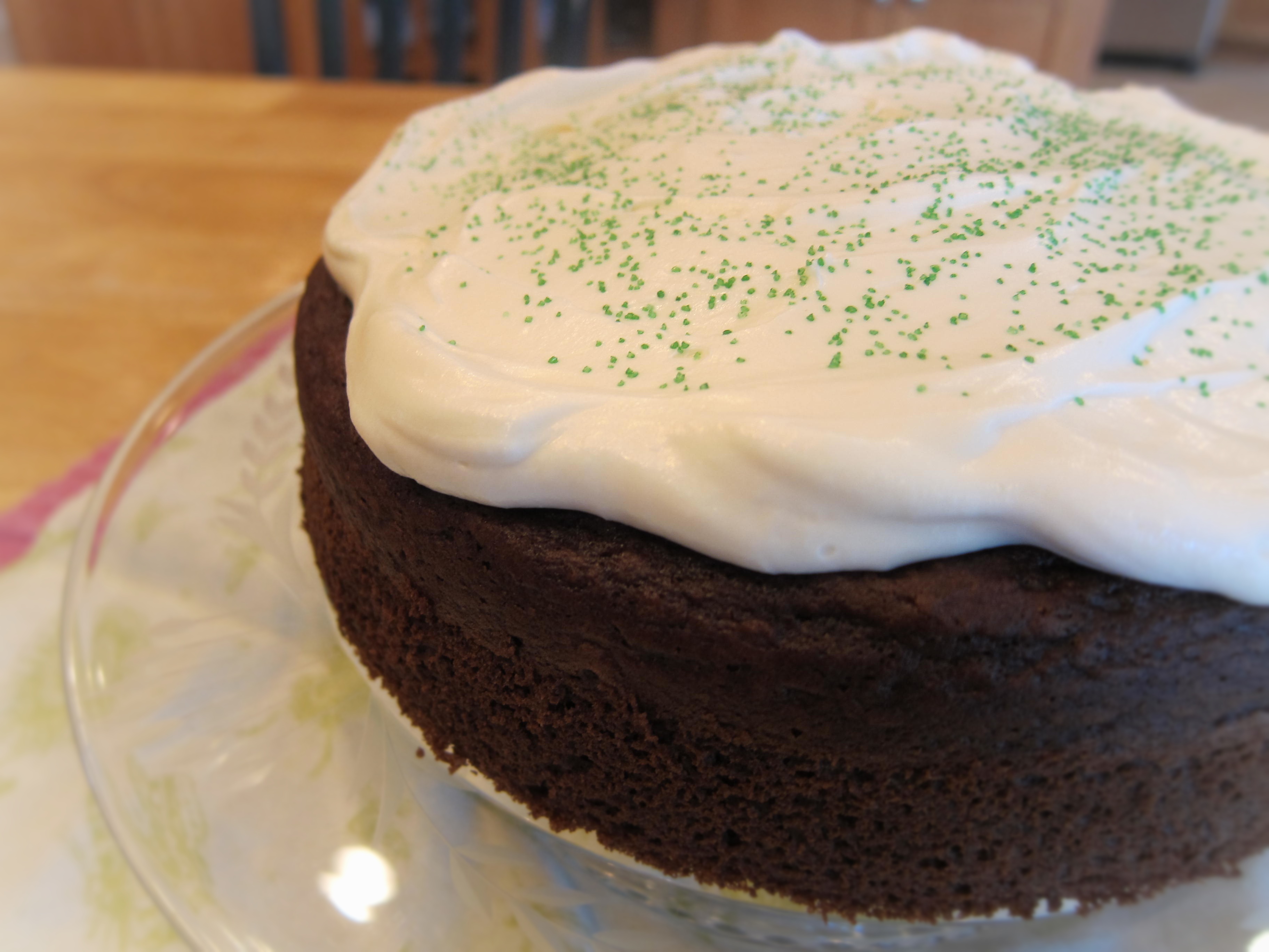 Place the cake on a serving stand and frost just the top of the cake. (It should look like the foamy head on a glass of beer!)