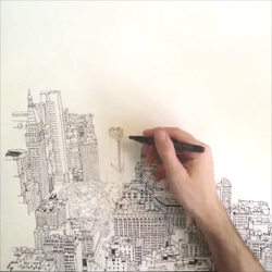 A time-lapse of illustrator Patrick Vale drawing the view of the Manhattan skyline from the Empire State Building.