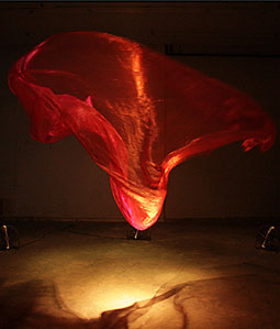 Sculpture artist Daniel Wurtzel uses a shimmering piece of fabric and air currents to create this magical, mesmerizing sculpture of motion and air.
