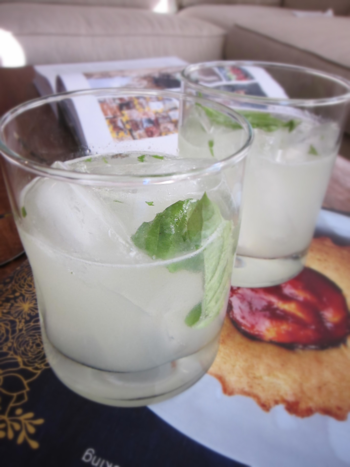 Strain into a rocks glass full of fresh ice and garnished with a basil leaf, then add the bitters.