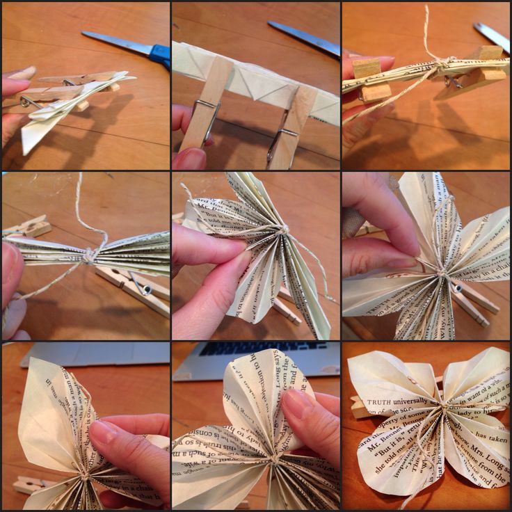 6. Gather the folded paper and hold it with two clothes pins