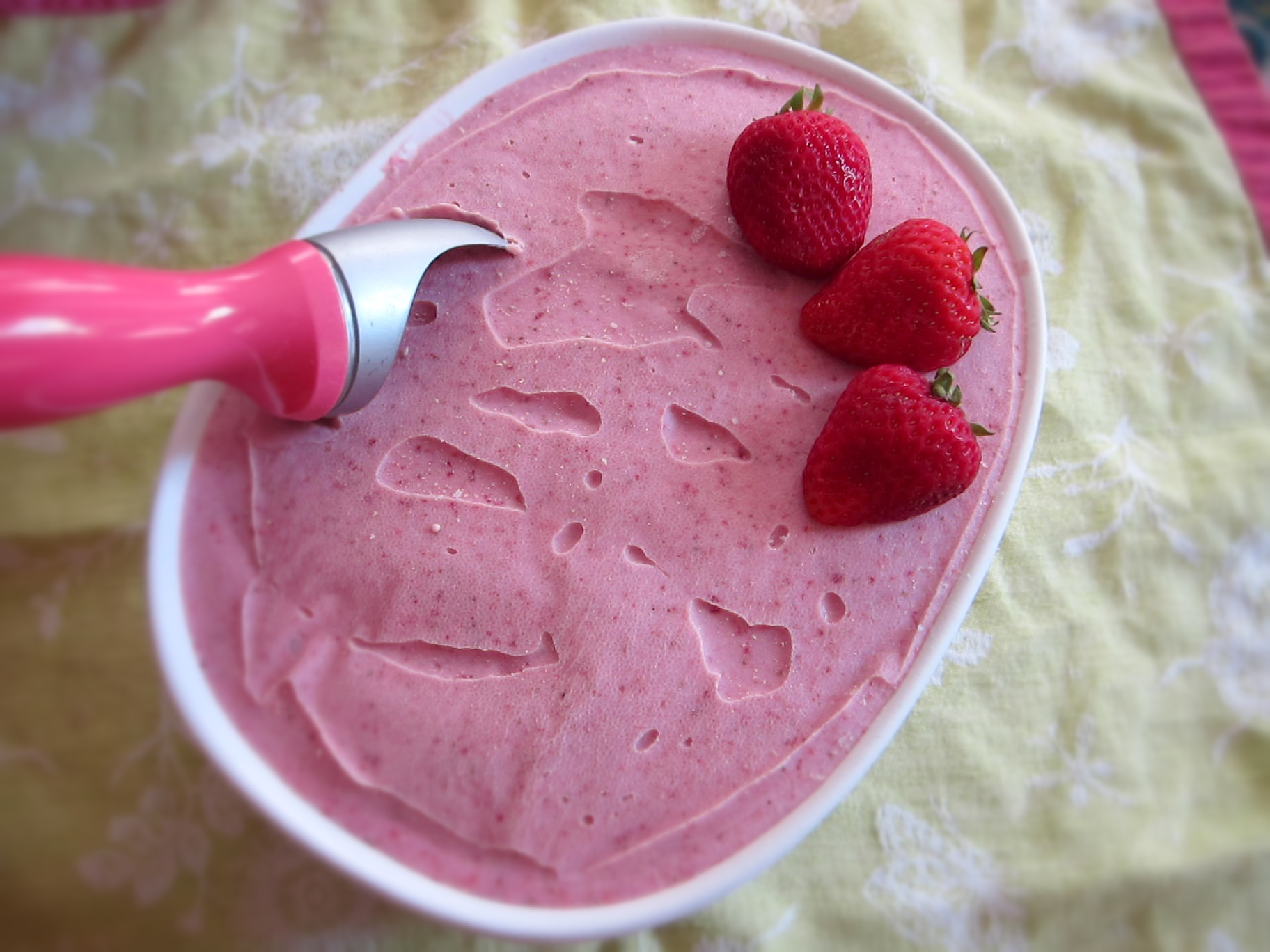 To a blender add, condensed milk and heavy cream. Blend on medium speed until combined. Add the frozen strawberries and blend until strawberries are combined with the milk and cream.