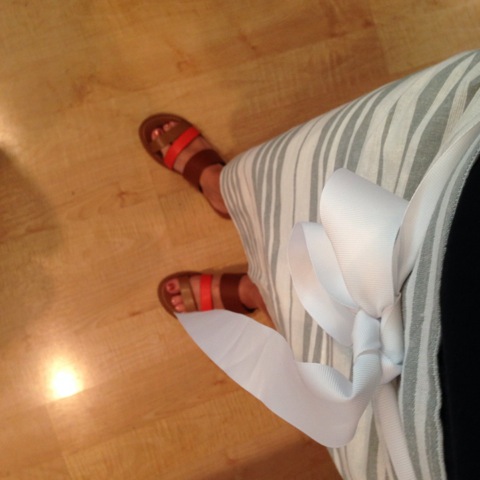2. Choose your ribbon (about 2 yards). Cut in half to form two ties.