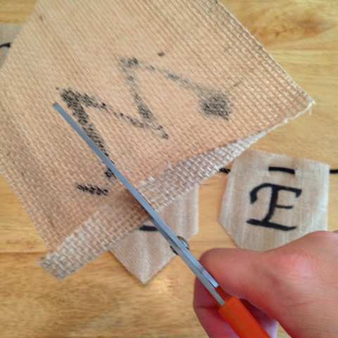 12) Fold over the top of your banner pieces and snip two holes for the twine to thread through.