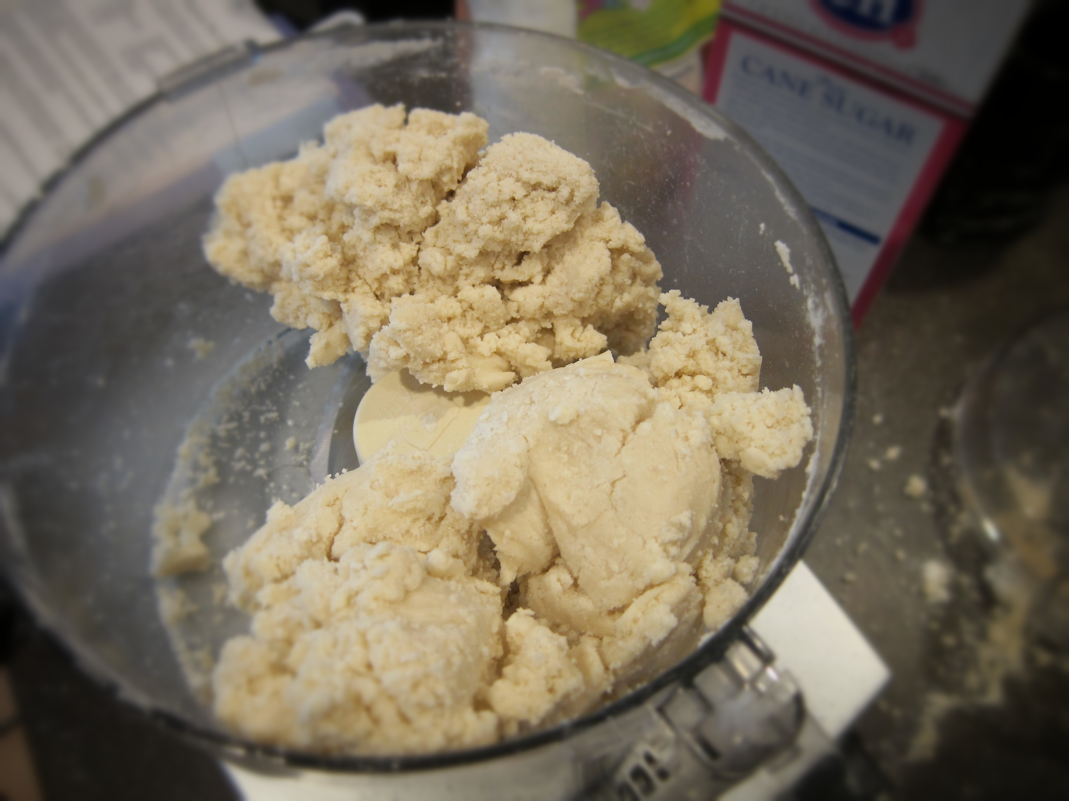 With the processor running, drizzle the ice water through the feed tube until the dough rolls itself into a loose ball.