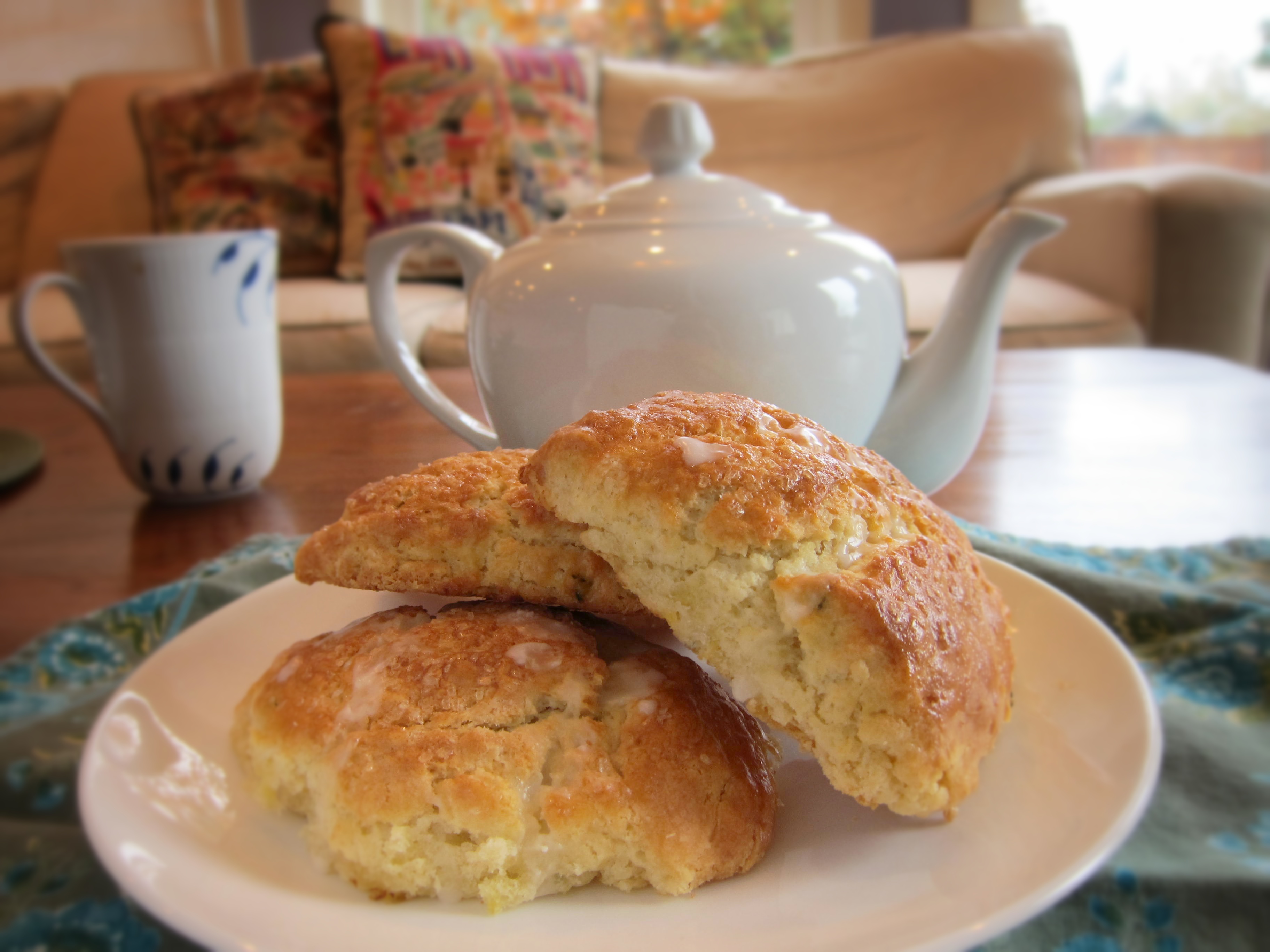 In the bowl of an electric mixer add the flour, sugar, baking powder, salt, lemon zest and thyme.
