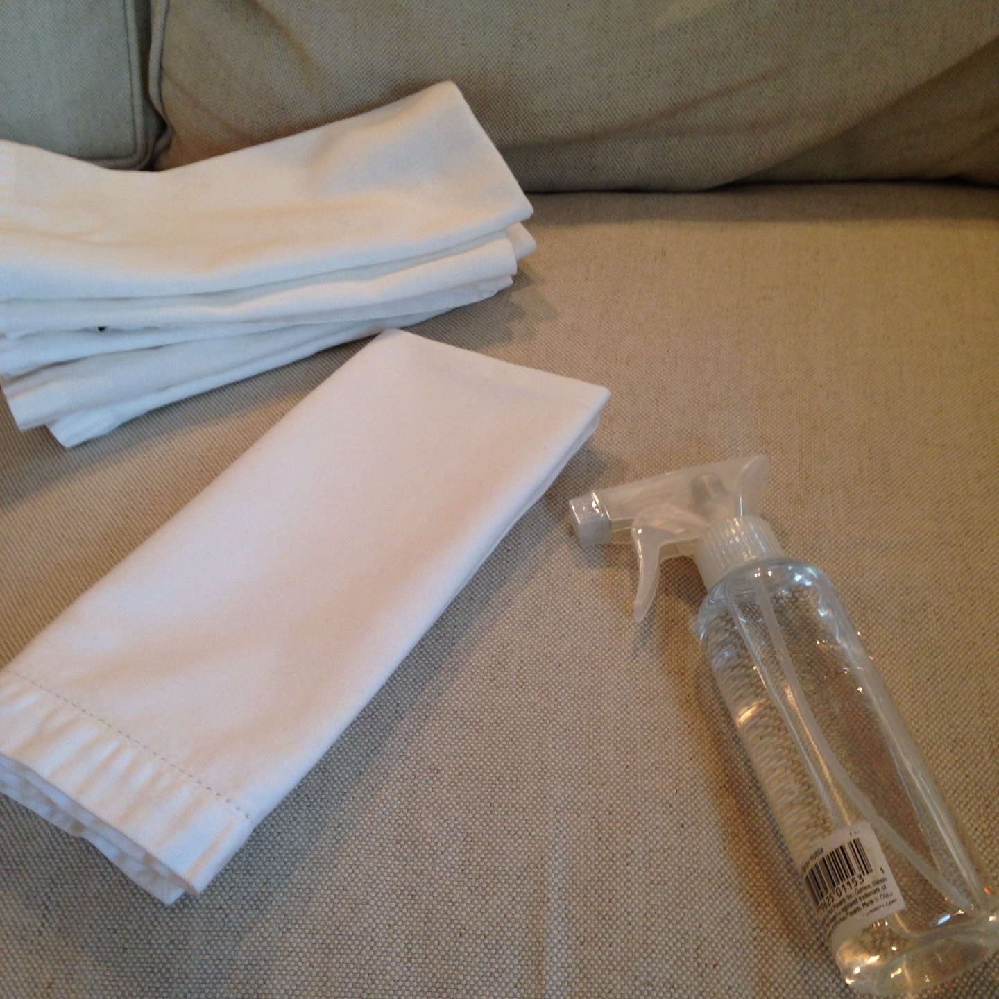Lightly spritz the napkin with the water. You want it to be damp not soaking wet.