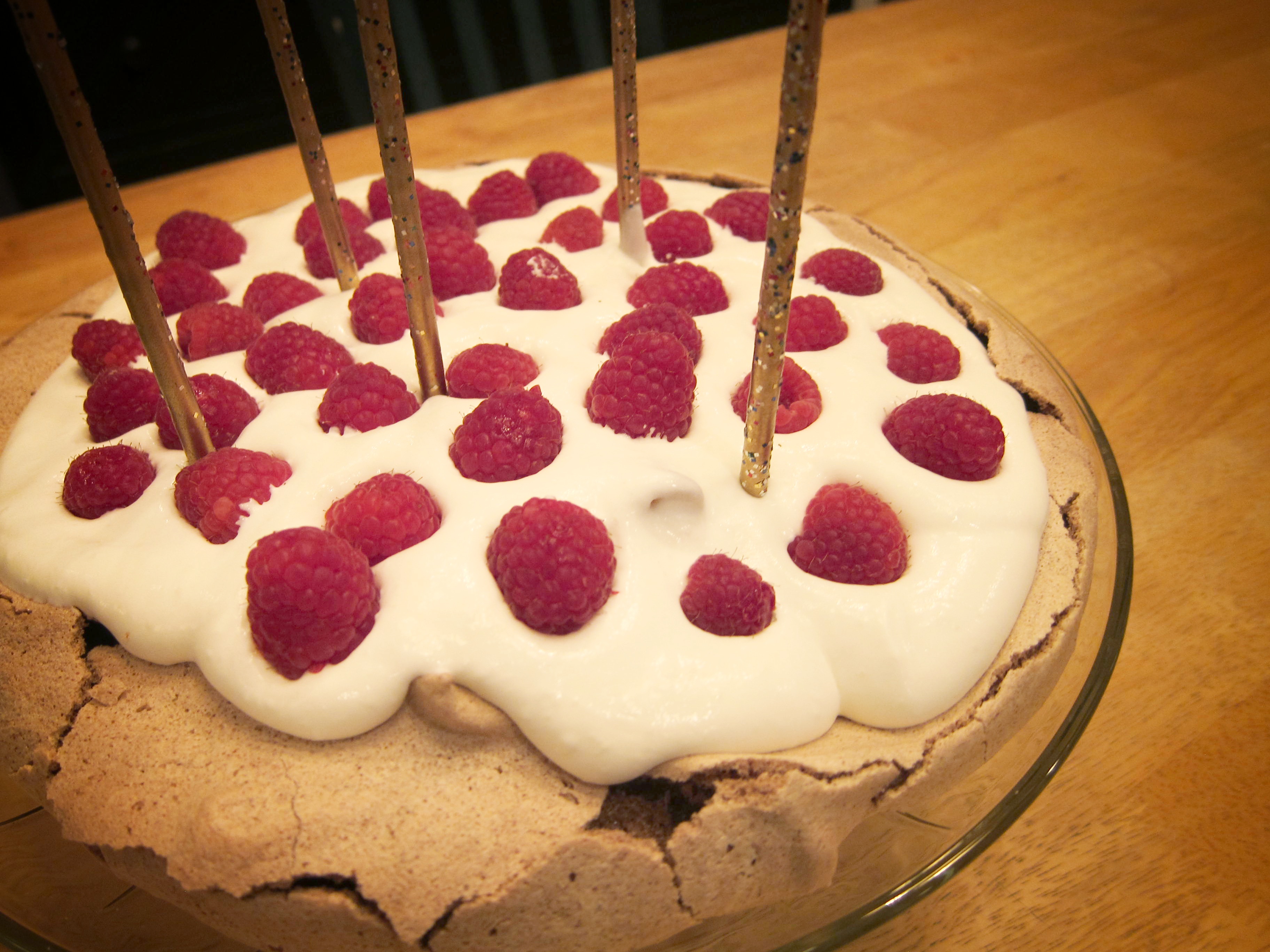 Spoon the meringue into a rough 9 inch circle onto a sheet pan lined with parchment paper.